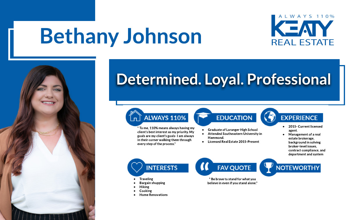 Bethany Johnson M: 225-329-8216 if (!empty($social)): ?> endif; ?> if (!empty($social)): ?> endif; ?> Home Agents Bethany Johnson Bethany Johnson Expert Real Estate Advisor Mobile: 225-329-8216 Personal Website Keaty Real Estate, LLC 350 Doucet Road, Suite B Lafayette LA 70503 Contact Me Now First Name * Last Name * Email Address * Phone Number * Message Submit Disclaimer: By providing my phone number and submitting the form, I expressly consent to Keaty Real Estate, LLC contacting me at this number by calling me or sending me text messages, including marketing and promotional messages, using an automatic telephone dialing system, related to our products and services for real estate transactions, even if my name appears on the "Do Not Call" list. Providing my consent is not required to obtain our products or services. Message and data rates may apply. Message frequency varies. Text HELP for help or STOP to unsubscribe. My information will be handled in accordance with Keaty Real Estate, LLC's Privacy Policy and Keaty Real Estate, LLC's Terms of Use.