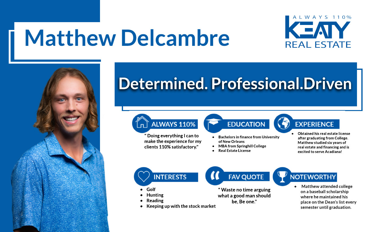 Matthew Delcambre M: 337-315-1460 if (!empty($social)): ?> endif; ?> if (!empty($social)): ?> endif; ?> Home Agents Matthew Delcambre DialDelcambre Awards & Designations #1 in Volume at Keaty Real Estate Top 1% in volume in Louisiana Matthew Delcambre Expert Real Estate Advisor Mobile: 337-315-1460 Personal Website Keaty Real Estate, LLC 350 Doucet Road, Suite B Lafayette LA 70503 Contact Me Now First Name * Last Name * Email Address * Phone Number * Message Submit Disclaimer: By providing my phone number and submitting the form, I expressly consent to Keaty Real Estate, LLC contacting me at this number by calling me or sending me text messages, including marketing and promotional messages, using an automatic telephone dialing system, related to our products and services for real estate transactions, even if my name appears on the "Do Not Call" list. Providing my consent is not required to obtain our products or services. Message and data rates may apply. Message frequency varies. Text HELP for help or STOP to unsubscribe. My information will be handled in accordance with Keaty Real Estate, LLC's Privacy Policy and Keaty Real Estate, LLC's Terms of Use.